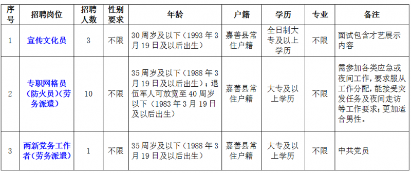 本次公开招聘岗位共3个,共计招聘工作人员14名,具体招聘岗位、人数和资格条件等详见附件1《2024年嘉善经济技术开发区(惠民街道)公开招聘工作人员计划及岗位需求表》。
