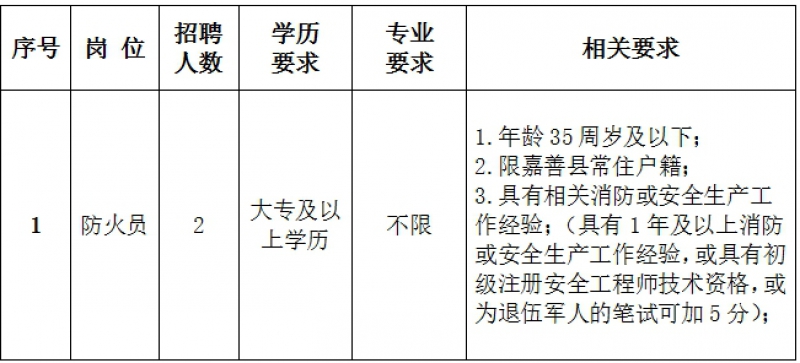 大云镇人民政府公开招聘岗位1个,拟招聘防火员2名。具体岗位要求详见附件《大云镇公开招聘防火员计划及岗位要求表》。