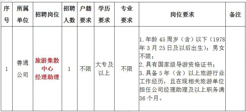 3.年龄及身体状况:年满18周岁(2006年3月25日出生),其余年龄要求详见附件1《2024年嘉善县交投集团下属善通公司旅游集散中心公开招聘计划及岗位需求表》,身体健康;