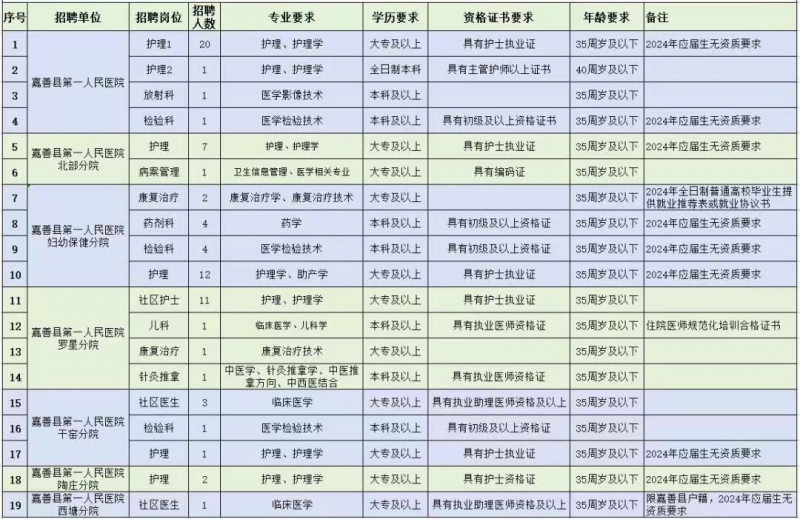 嘉善县第一人民医院医共体因业务发展需要,经医共体党委领导研究决定,拟公开招聘编外合同制工作人员,现将有关事项公告如下: