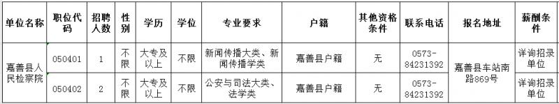嘉兴市两级检察院共招录司法雇员25名(其中嘉善县检察院招录3名)。